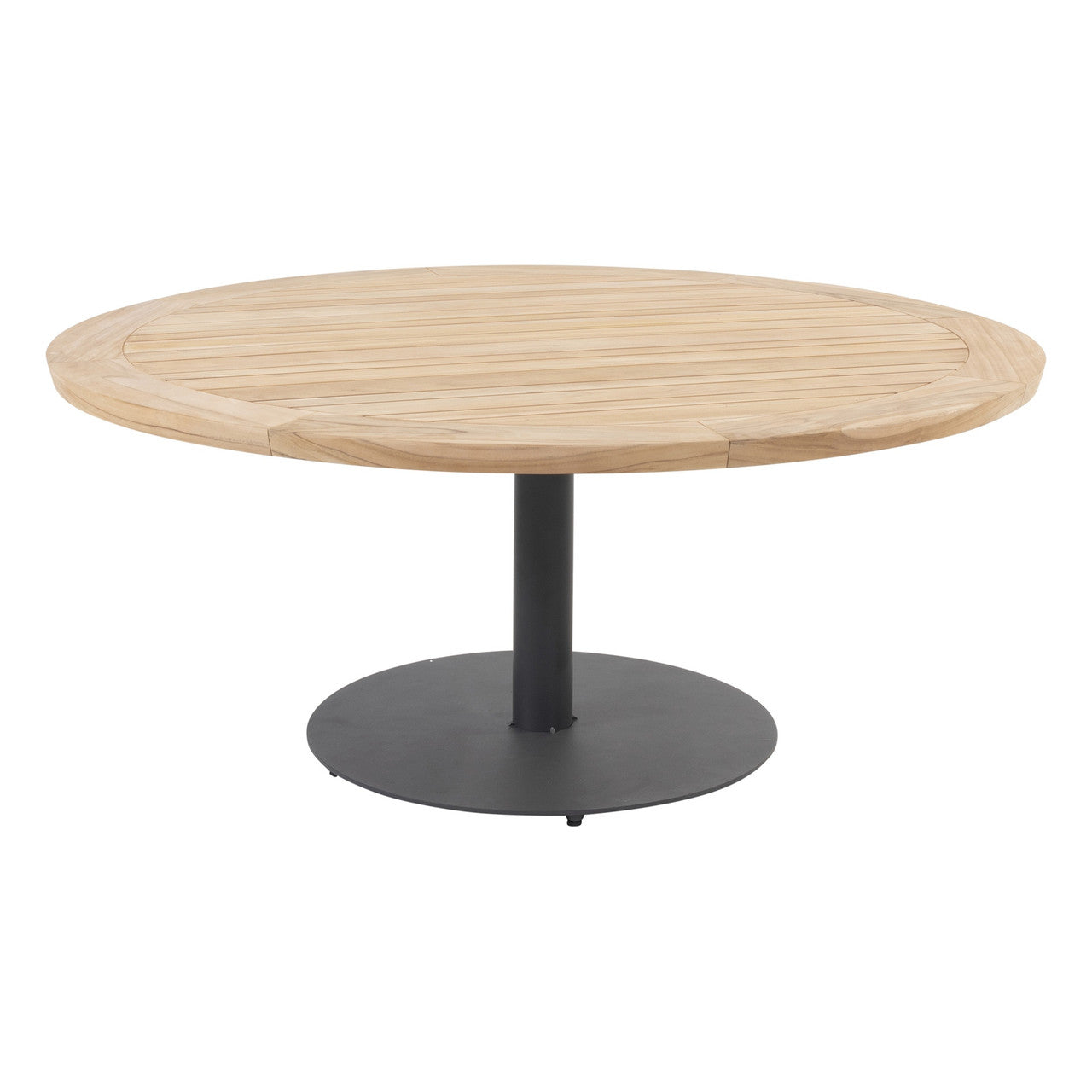 Around the table. We don't circle around it, but the Saba round low-dining table, together with the Calpi low dining chair, is a perfect mix of lounge and dining. The beautiful teak table top rests on the central column. Sit, dine, lounge. The circle is complete.