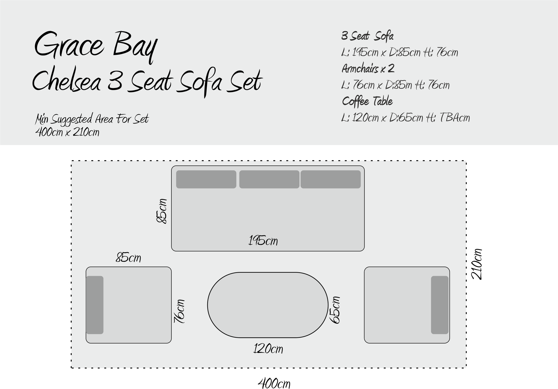 Immerse yourself in luxury with the Grace Bay Chelsea range. Its sturdy aluminium frame provides durability, while the stunning yet elegant rope effect weave of the seat backs adds a touch of beauty to your outdoor space.