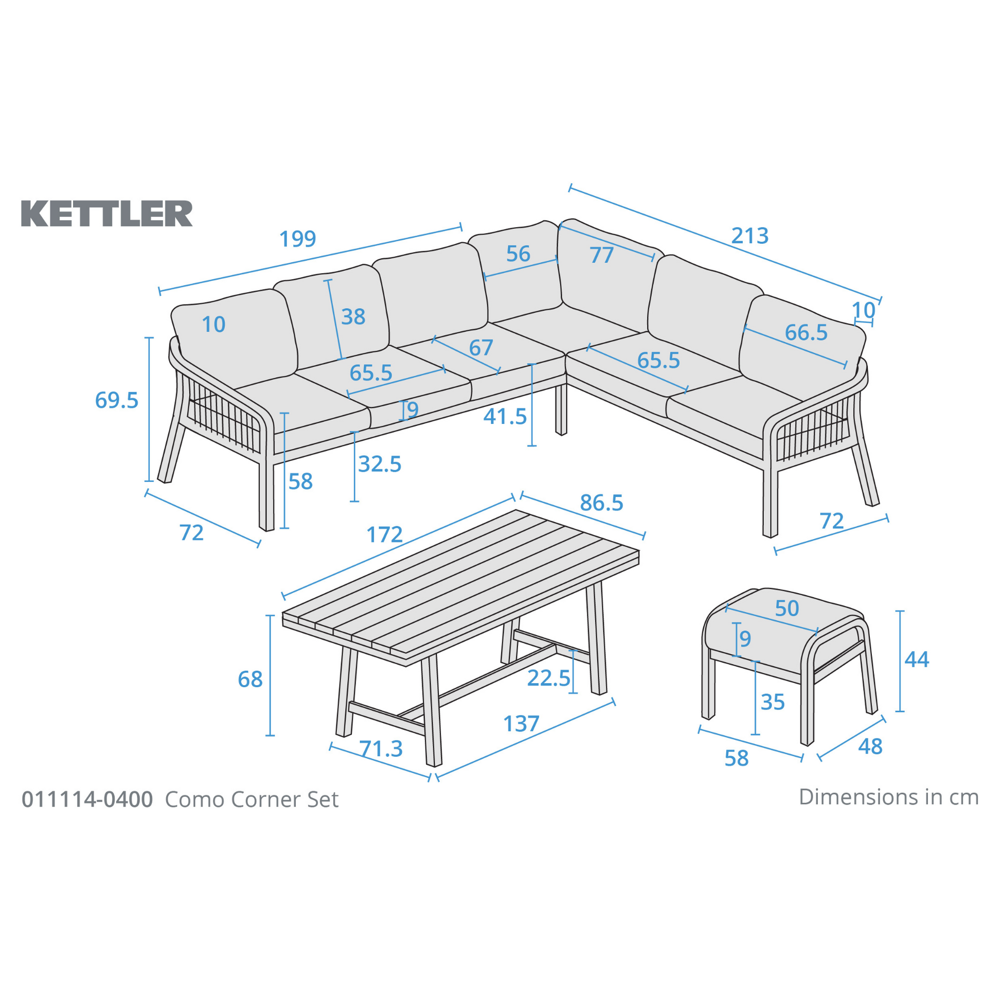Kettler Como Corner Lounge Dining Set with Footstools