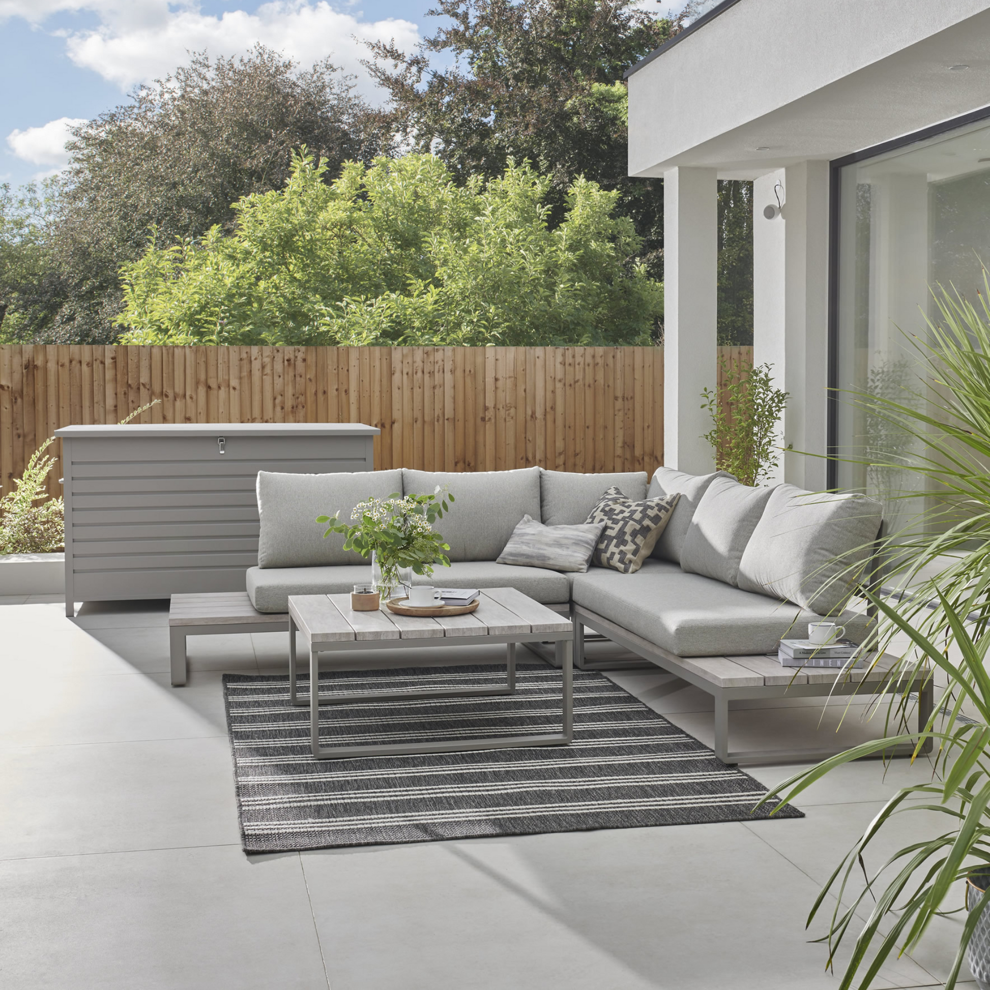 The Marina Corner Set brings contemporary elegance and everyday functionality to your outdoor space. It features a fresh colourway and a design that blends comfort and style. With weatherproof seat pads, integrated side tables and a sleek wood-effect coffee table, the kettler Marina set is perfect for relaxing outdoors. Made from lightweight yet robust aluminium, it promises strength without the hassle of high maintenance. Ideal for entertaining or unwinding, this set is the ultimate addition to your garden or patio.